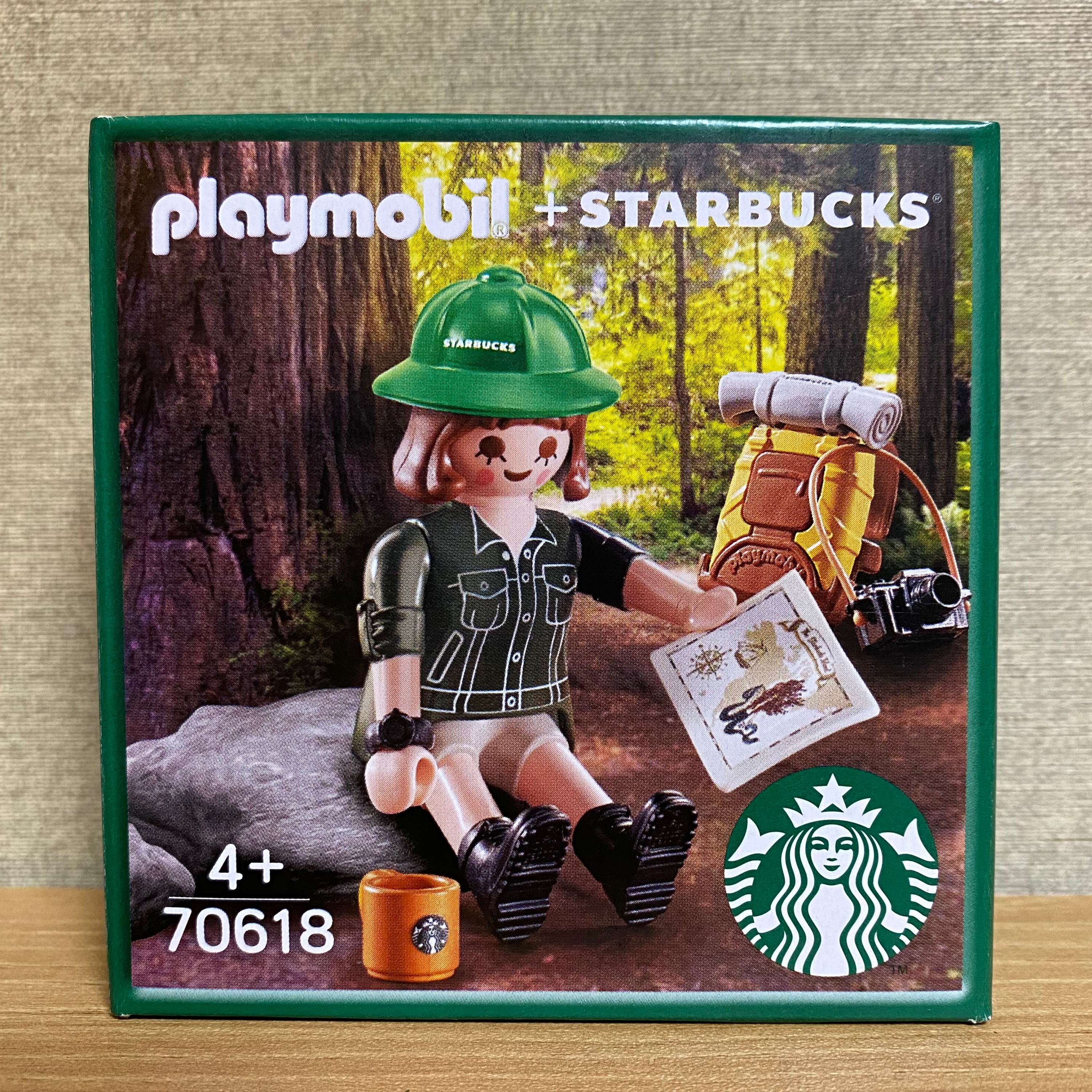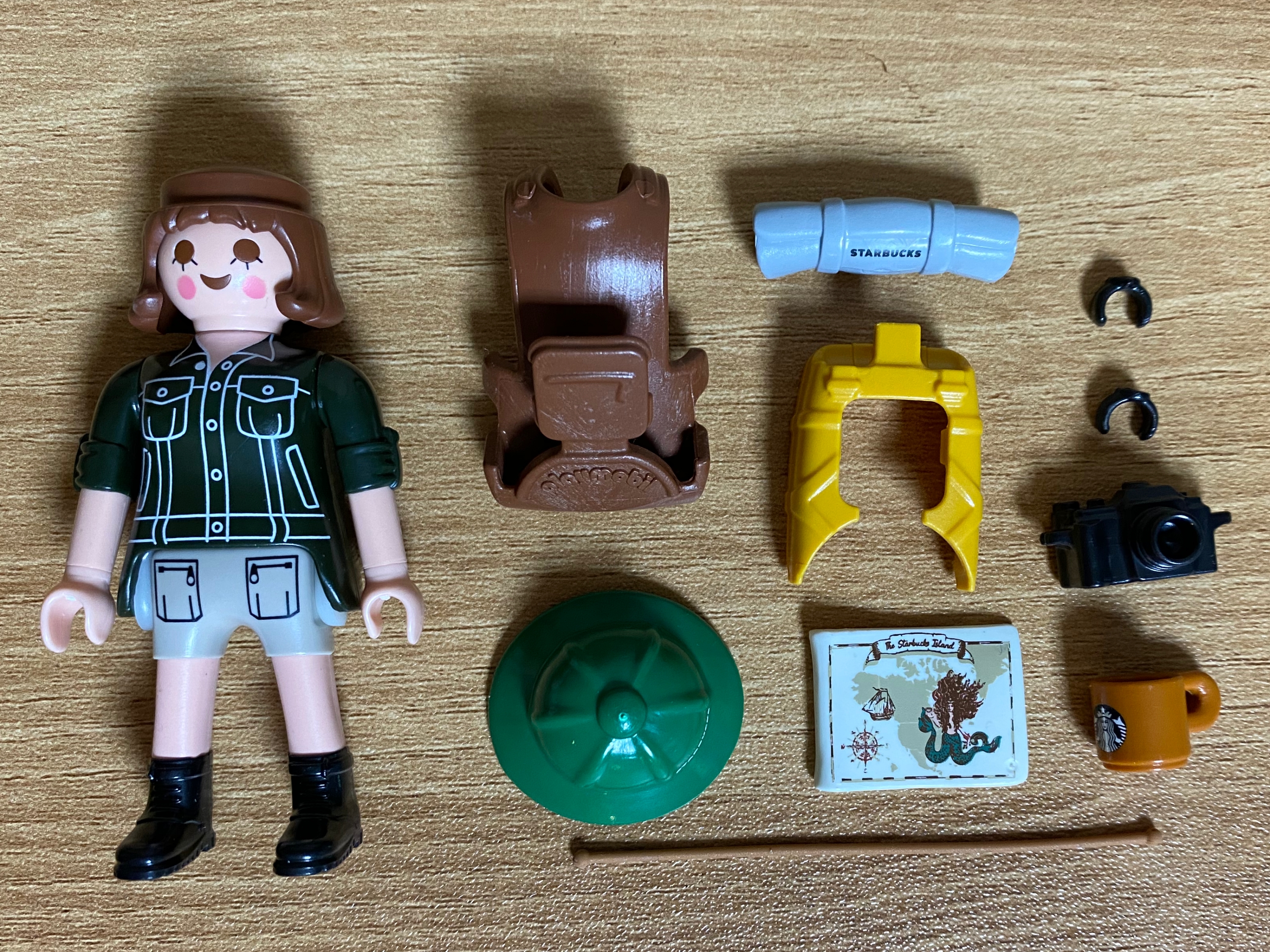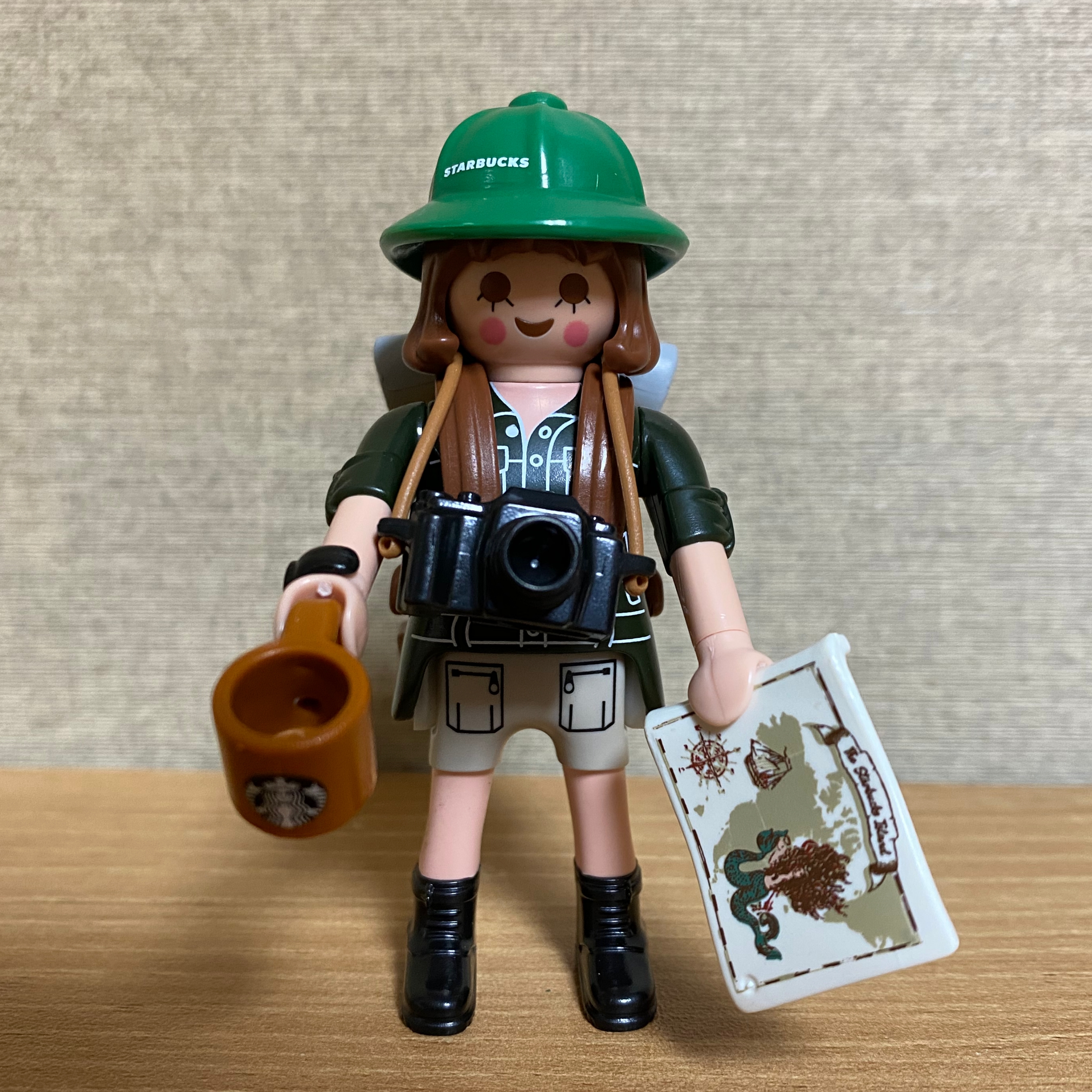 침낭과 지도에는 스타벅스 로고가 새겨져 있습니다.