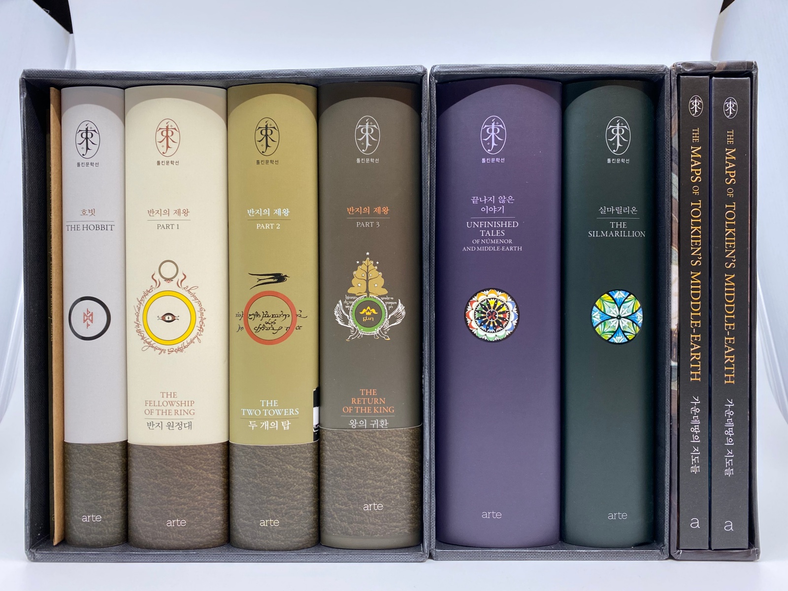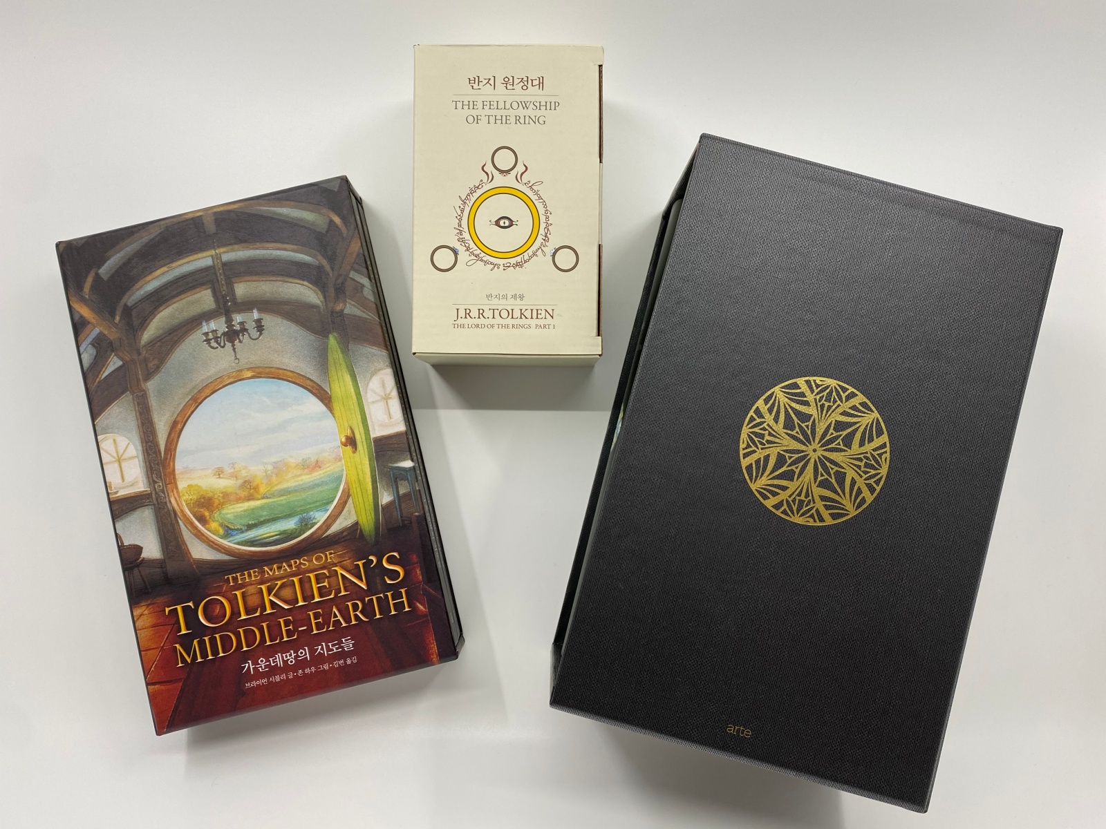이번에 아르테 arte 출판사에서 톨킨옹의 반지의 제왕 + 호빗 신장판 세트를 발매했습니다. 2014년 하퍼콜린스에서 출간한 '60주년 기념판'을 기초로 해서 수정 내용 반영 및 번역을 새로 하고, 톨
