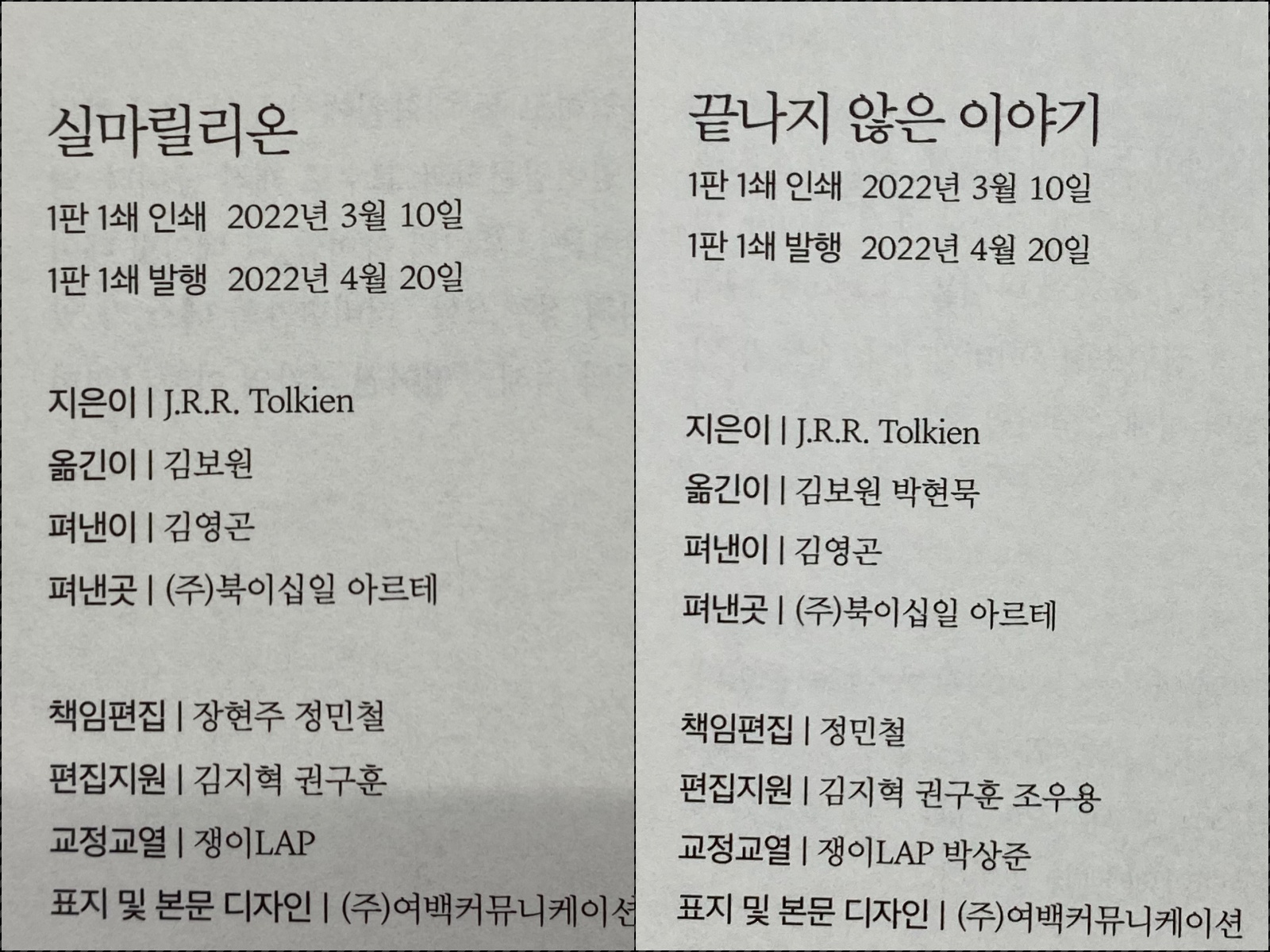 오른쪽이 '실마릴리온 + 끝나지 않은 이야기',