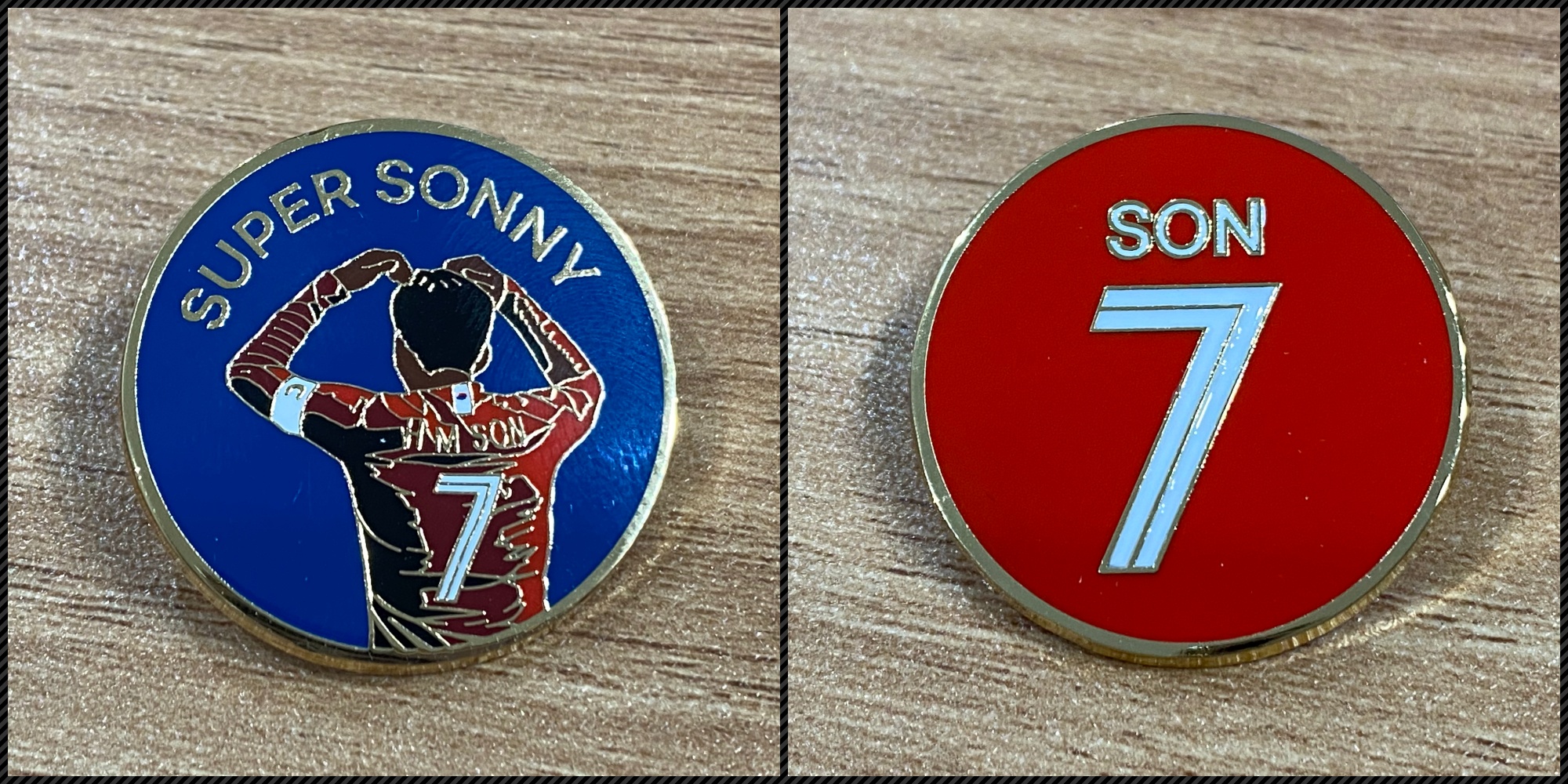 손흥민 선수의 뒷모습을 담은 뱃지와,